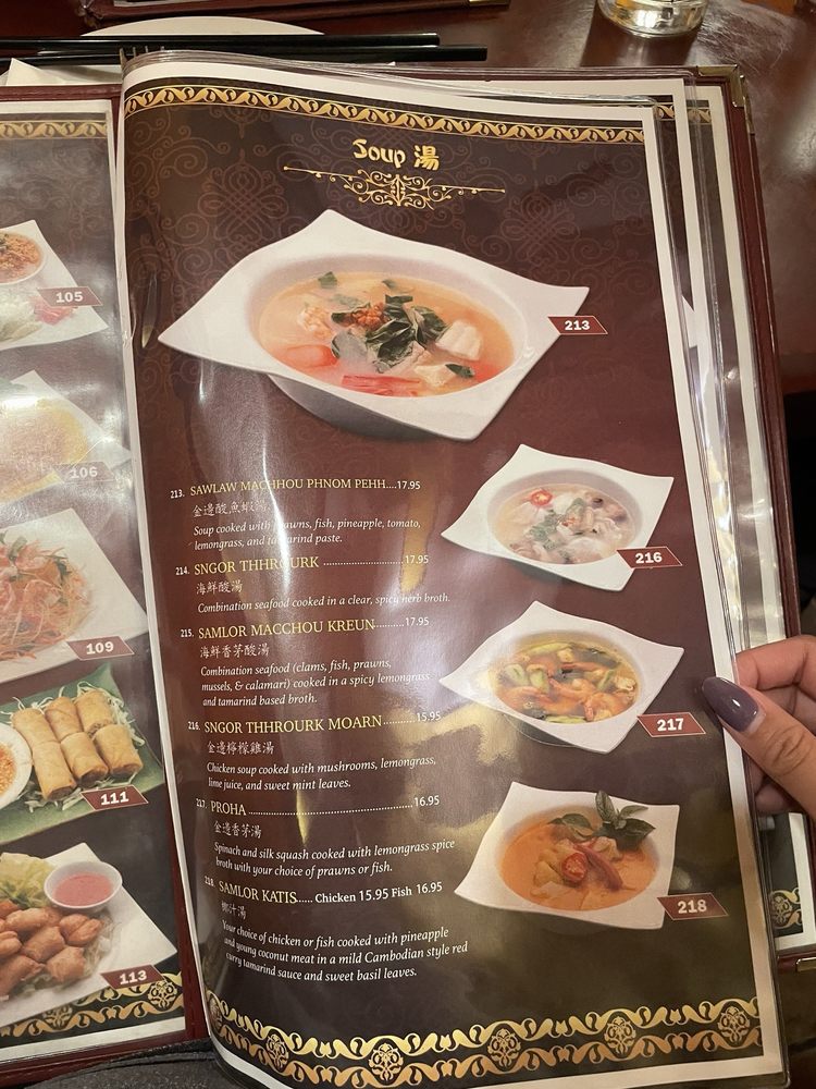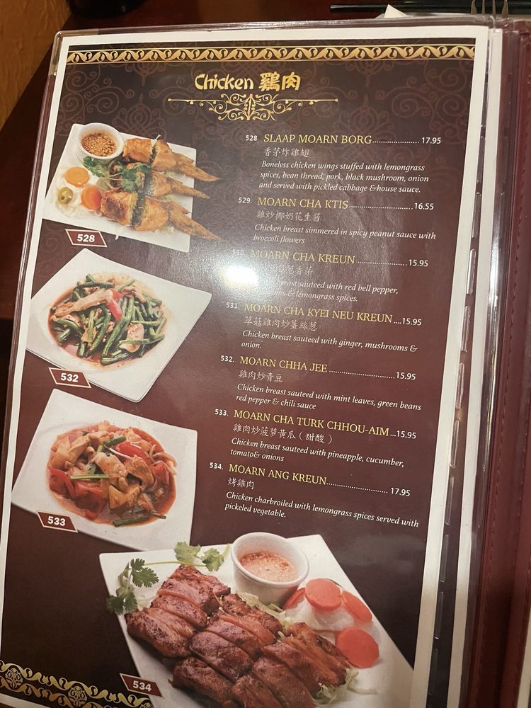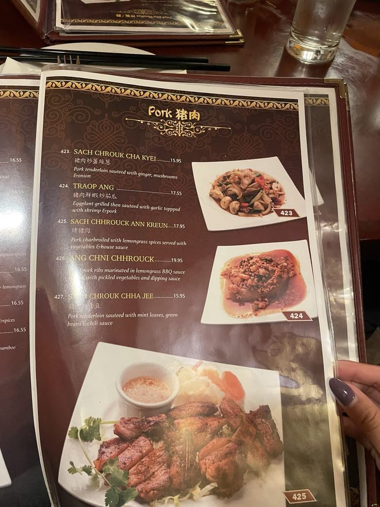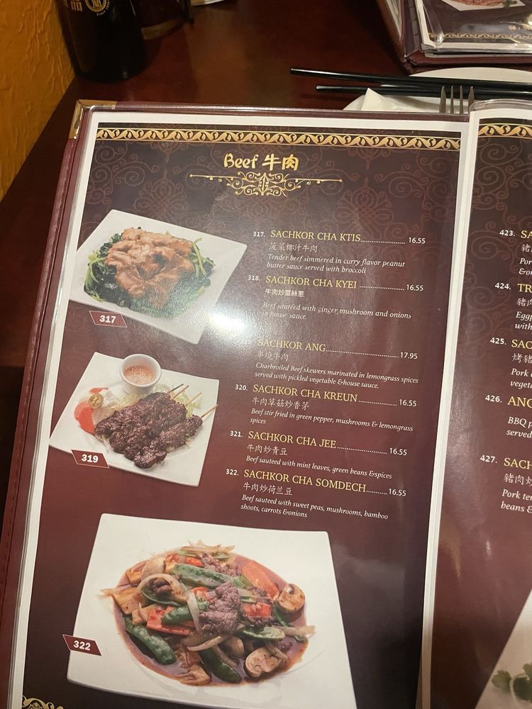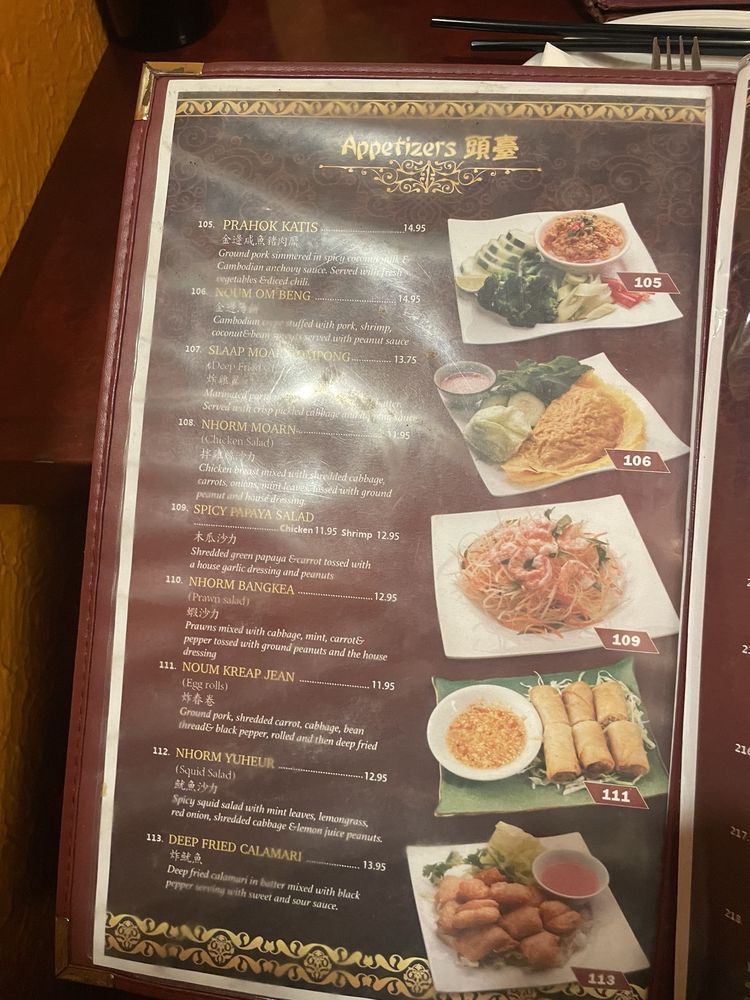 Phnom Penh House Restaurant, located in Oakland, CA, offers a diverse menu with vegan and limited vegetarian options. With a casual yet classy atmosphere, this restaurant is wheelchair accessible and perfect for groups or dinner outings. Customers rave about the flavorful dishes, such as stuffed chicken wings, beef skewers, duck curry, tofu yellow curry, chicken moarn ang kreun, and spicy papaya salad. The portions are generous, perfect for family-style dining, and the service is attentive. While the restaurant may lack air conditioning, the dishes make up for it with their blend of Cambodian, Thai, and Indian flavors. Overall, Phnom Penh House Restaurant is a hidden gem with delicious food and a cozy ambiance.